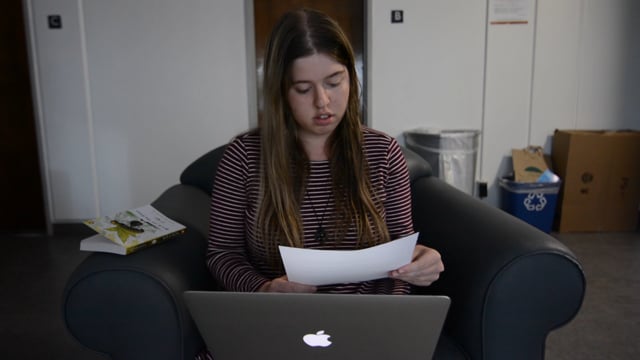 A studious girl’s rowdy roommates make it impossible to write her essay.